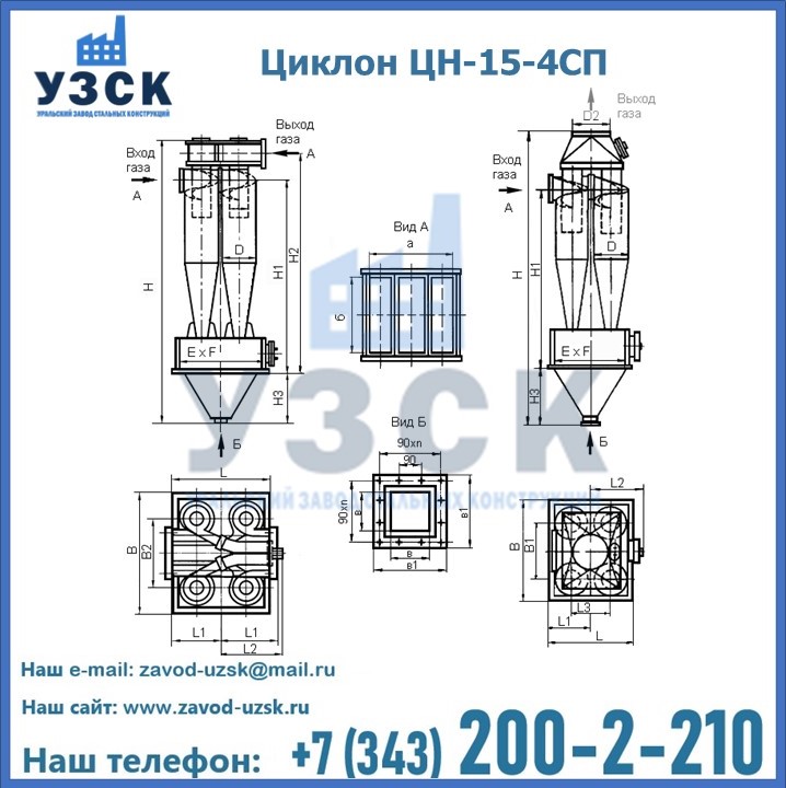 Завод «УЗСК» в Пятигорске предлагает большой выбор циклонов ЦН-15-700×4СП и прочих устройств, полностью укомплектованных и готовых к эксплуатации. Мы гарантируем соответствие оборудования всем требованиям ГОСТ и ТУ, износостойкость и высокую производительность предлагаемого оборудования. Уральский Завод Стальных Конструкций изготавливает и продает надежное, эффективное и производительное оборудование, имеющее длительную гарантию и большой эксплуатационный ресурс. Если требуется изготовить циклон нестандартных размеров, то такой вариант выполнения заказа тоже предусмотрен, так как предприятие имеет собственные производственные площади и надежных поставщиков. На все поставляемое или производимое оборудование имеются чертежи и прочая техническая документация. Заказать и купить циклоны или прочее оборудование высокого качества и по доступной цене можно через наш сайт или по указанному в разделе «Контакты» телефону.