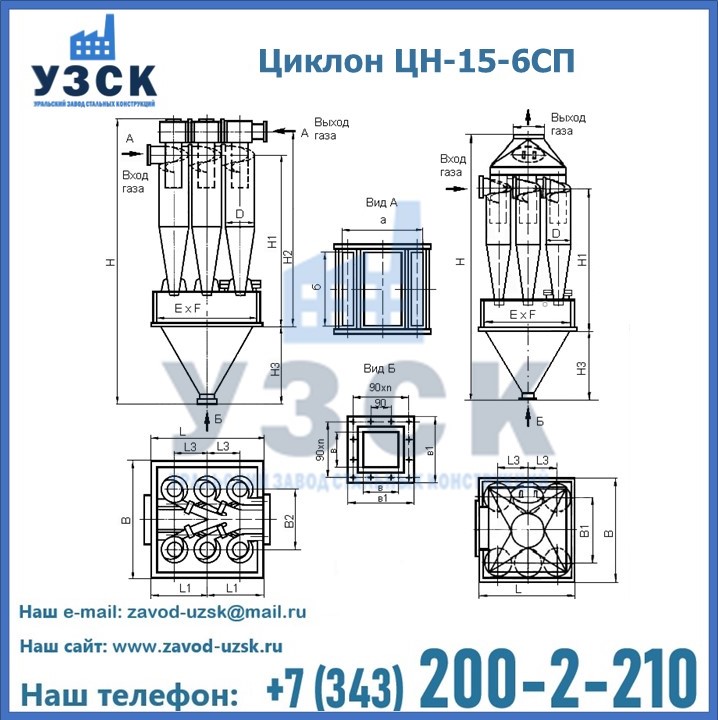 Завод «УЗСК» в Пятигорске предлагает большой выбор циклонов ЦН-15-800×6СП и прочих устройств, полностью укомплектованных и готовых к эксплуатации. Мы гарантируем соответствие оборудования всем требованиям ГОСТ и ТУ, износостойкость и высокую производительность предлагаемого оборудования. Уральский Завод Стальных Конструкций изготавливает и продает надежное, эффективное и производительное оборудование, имеющее длительную гарантию и большой эксплуатационный ресурс. Если требуется изготовить циклон нестандартных размеров, то такой вариант выполнения заказа тоже предусмотрен, так как предприятие имеет собственные производственные площади и надежных поставщиков. На все поставляемое или производимое оборудование имеются чертежи и прочая техническая документация. Заказать и купить циклоны или прочее оборудование высокого качества и по доступной цене можно через наш сайт или по указанному в разделе «Контакты» телефону.