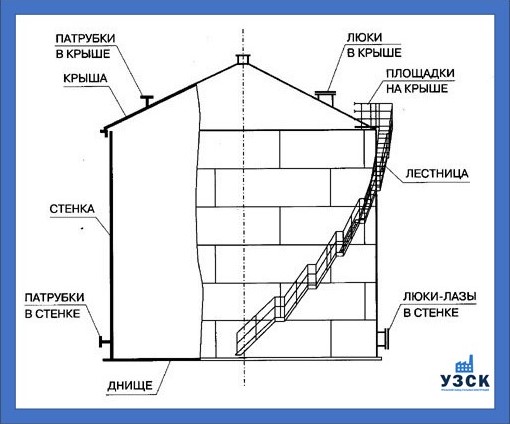 Конструкция резервуара 200 м3 состоит из: