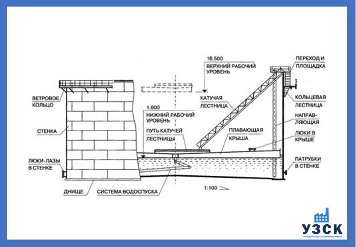 Конструкция резервуара 50 000 м3 состоит из: